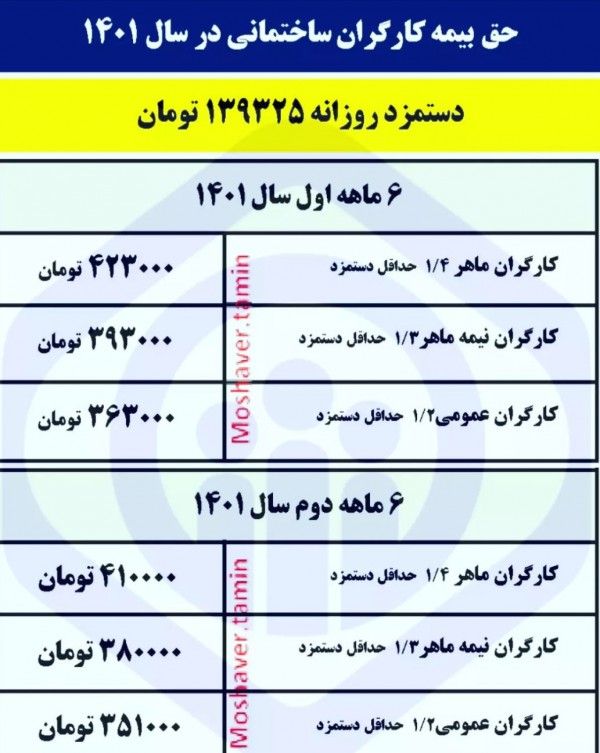 برای حداقل حقوق این مبلغ به شرح زیر است:
